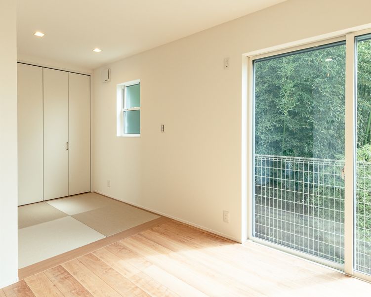 リビングに隣接した畳スペース。ゆったりと外を眺めながら、家族の憩いの場に。
